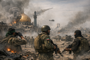 A transformação súbita da arquitectura política iraniana após o ataque de 28 de Fevereiro de 2026 constitui um dos episódios mais marcantes da história recente do Médio Oriente. A eliminação simultânea de figuras centrais do regime entre as quais a antiga autoridade suprema e o ex‑presidente do parlamento produziu uma ruptura institucional sem precedentes desde 1979. Embora o sistema político iraniano tenha demonstrado, ao longo das décadas, uma notável capacidade de adaptação, a magnitude do choque desencadeou uma metamorfose acelerada que alterou profundamente o equilíbrio interno entre clero, forças armadas e elites tecnocráticas. A guerra, longe de provocar o colapso imediato da teocracia, precipitou a sua mutação, revelando a erosão progressiva do chamado “clero combatente” e a ascensão definitiva de uma geração de dirigentes moldados pela lógica securitária e pela economia de resistência.
